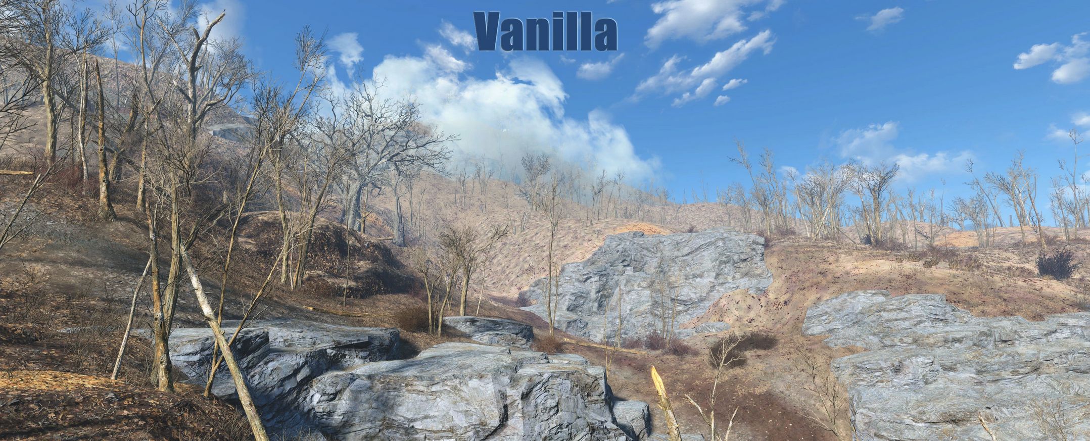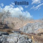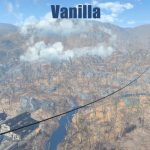 The game overlays a low quality noise texture on top of the terrain to try and blend the landscape as it fades in the distance. To fix, I have made a new terrain noise and detail normal texture pair that makes this transition much more visually pleasing and free of any splotchy brown freckles. I have also baked a very subtle amount of grass into the texture to help hide the grass fade line.