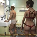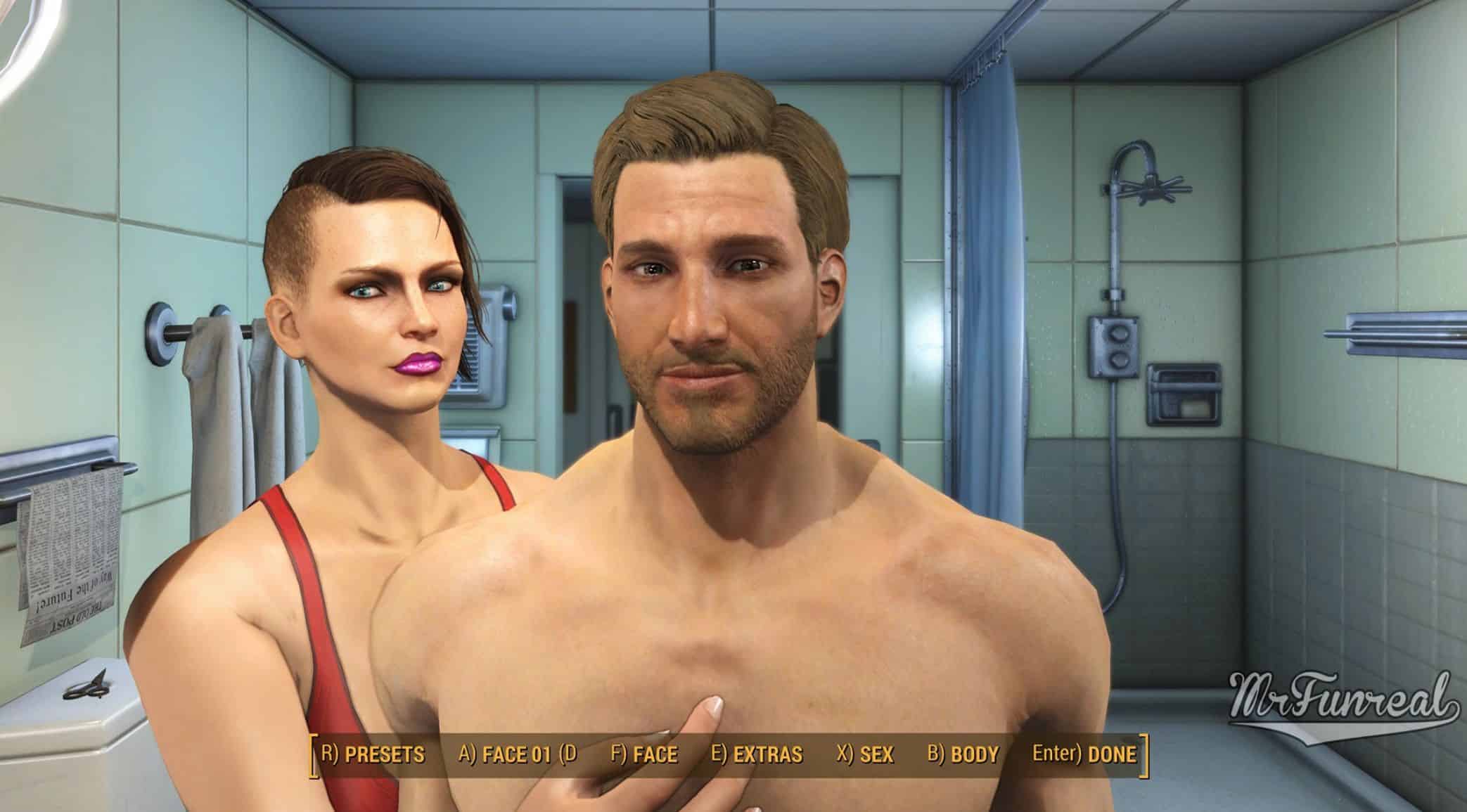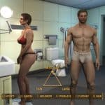 The male player wears a special “ChargenPlayerClothes” armor in front of the mirror. I modified that armor to be the same as “SkinNaked”, which is what you see when you undress.